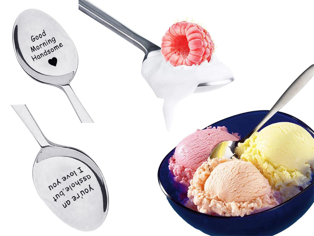На внутрішній поверхні ложки креативні і милі словосполучення, які ідеально підходить для закоханих або для просто люблячих сердець.