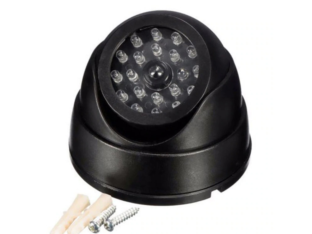 Камера- обманка виглядає як справжня камера відеоспостереження. Передбачені навіть миготливі світлодіоди червоним кольором, які блимають кожні 3 секунди.