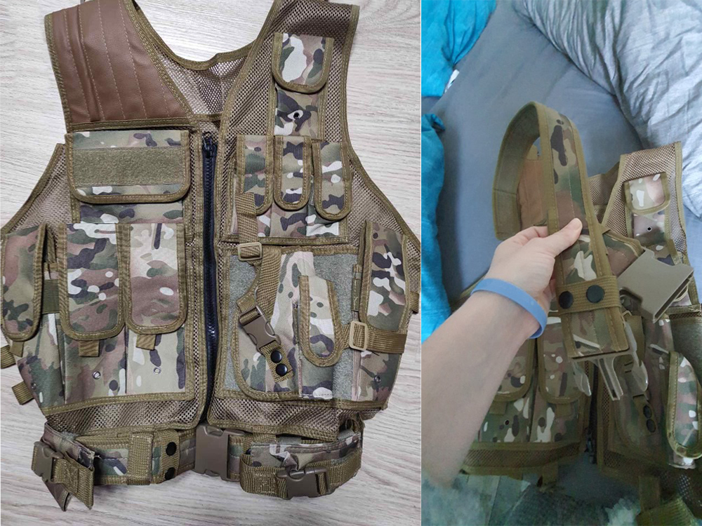 Жилет відмінний, регульований і виготовлений з якісного матеріал. На спині знаходяться регульовані ремені
