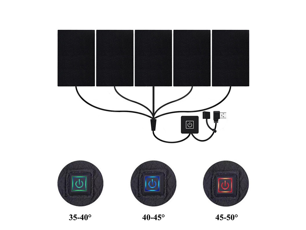 USB Нагрівальні елементи для жилета куртки термобілизни 5 елементів  Чорний, фото 2