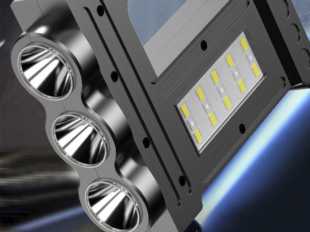 На передній панелі розташовано 3 світлодіодні ліхтарі, а на бічній панелі ліхтар COB.