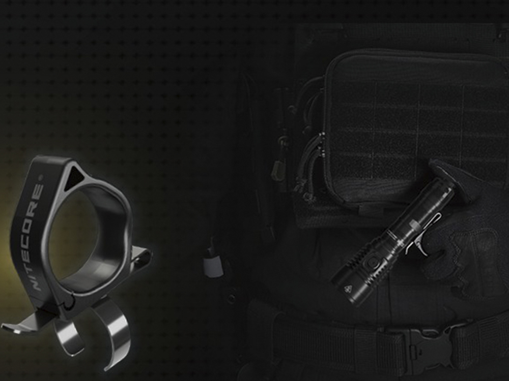 Є спеціальна металева скоба для підвішування ліхтарика на кишеню, пояс і т.д.