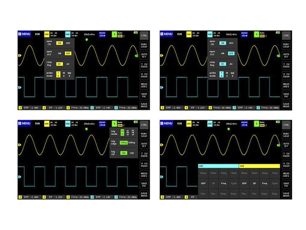Функція вимірювання курсора, зручно вручну вимірювати період, частоту і напругу.