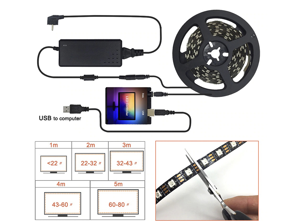 Показати оптові ціниАдаптивне фонове підсвічування Ambient Ambilight RGB - це відмінна стрічка для фонового підсвічування приміщення від ПК, ноуту, телевізора.
