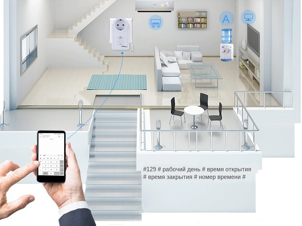 Також є можливість включення і виключення по дзвінку, якщо температура ставати вище або нижче призначеного Вами. Інструкція російською мовою.