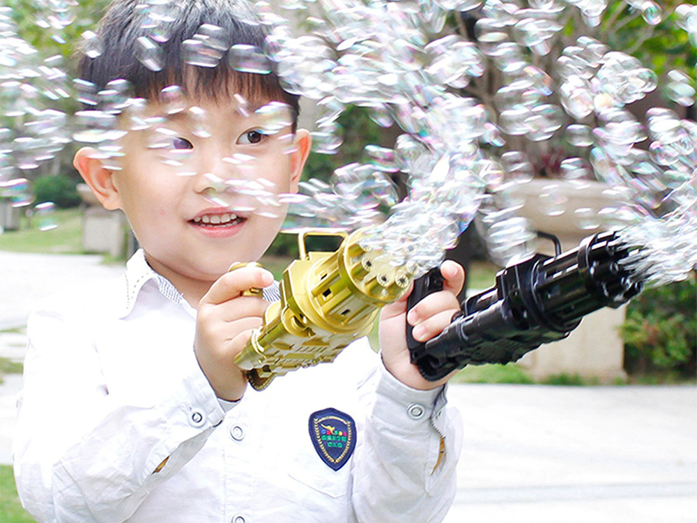 Показати оптові ціниКулемет генератор мильних бульбашок Bubble Gun - відмінний генератор бульбашок, який дуже сподобатися дітям, а й дорослі будуть в захваті.