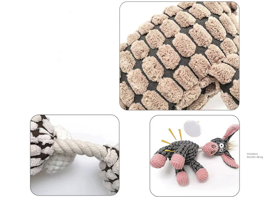 При стисканні живота м'яка іграшка видає звук, але звук не різкий, тому собака і домашні не лякатимуться.