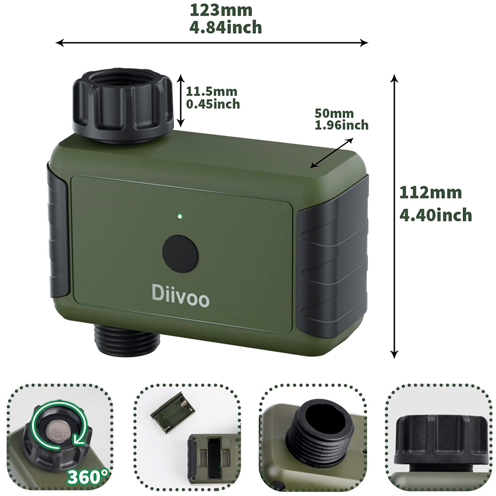 Показати оптові ціниРозумний таймер поливу Diivoo Bluetooth - це програмований таймер поливу, в якому доступно до 20 окремих програм та історія поливу.