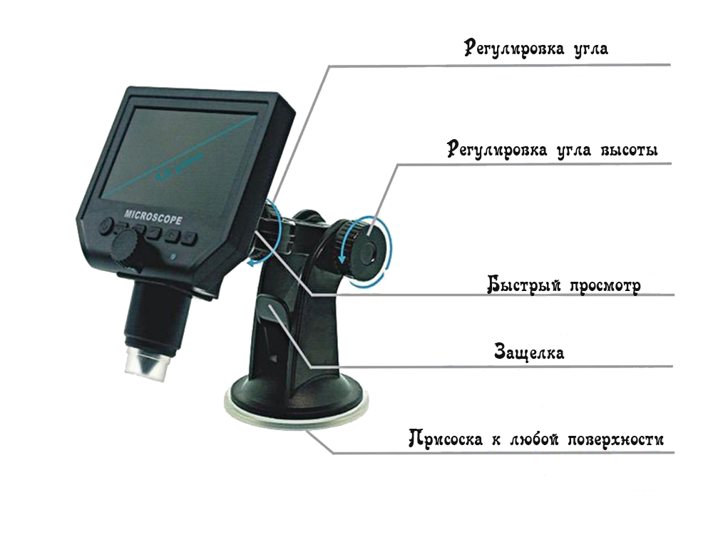 У мікроскопа товста, надійна присоска, яка відмінно тримає і прилипає до поверхні намертво.