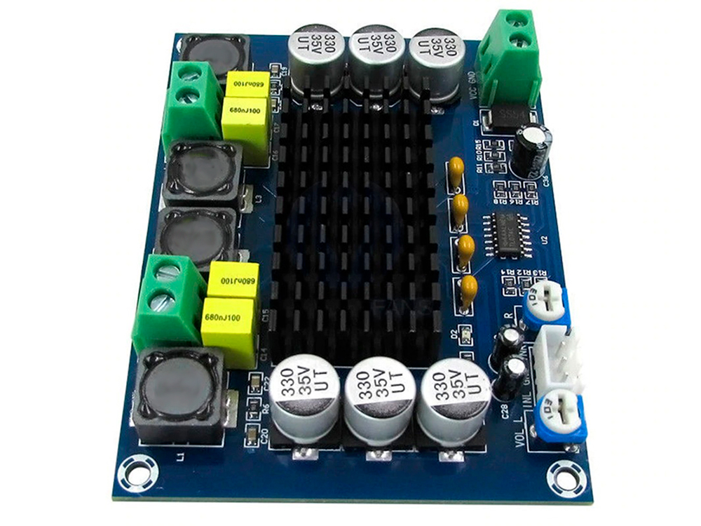 Показати оптові ціниПлата звукового підсилювача XH-M543 TPA3116D2 2 х 40 Вт - за допомогою цієї плати Ви зможете зібрати підсилювач. Для цього Вам достатньо буде підключити до неї блок живлення. Блок живлення має бути класу 12-25 В, бажаний струм не менше 2 А.