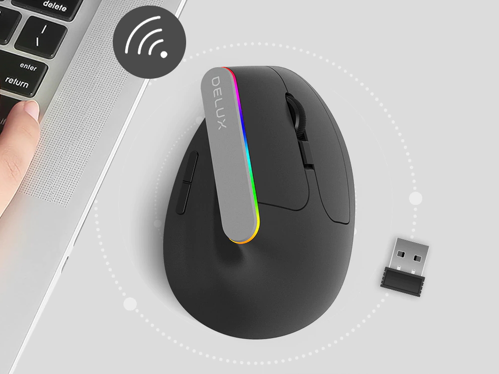 Показати оптові ціниКомпанія Delux представила цікавий комп'ютерний маніпулятор в форматі вертикальної комп'ютерної миші M618C RGB. Мишка оснащена оптичним сенсором, роздільну здатність якого можна регулювати в діапазоні від 1000 до 1600 DPI.