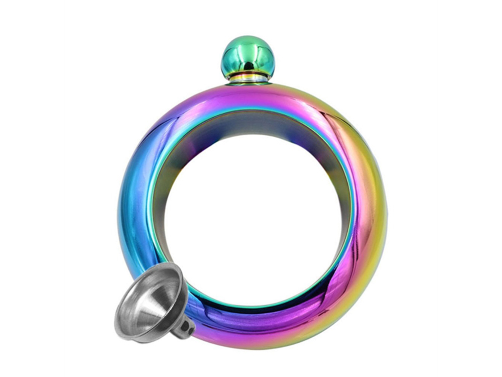 Виготовлена фляга браслет з нержавіючої сталі. Зовнішній розмір фляги 11,9 см х 10 см, а внутрішній діаметр 6,9 см.