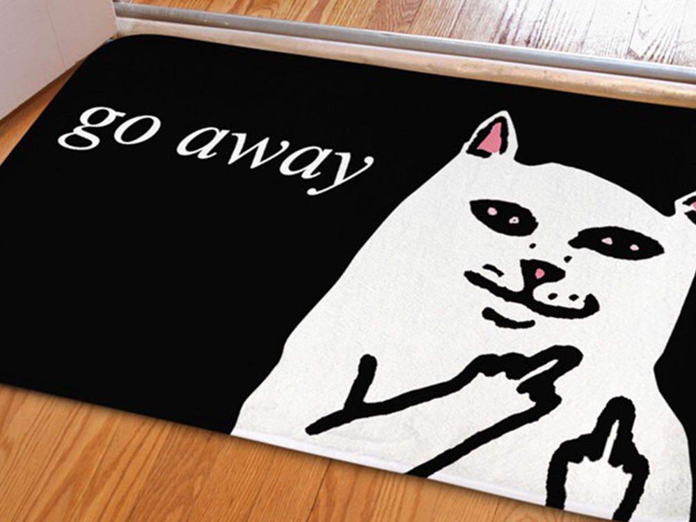 Килимок нековзний і має малюнок у вигляді популярного кота Lord Nermal. Це кіт дуже популярний в Америці. Так що килимок досить оригінальний і в тренді. Цього кота придумали дизайнера модного магазину RIPNDIP.