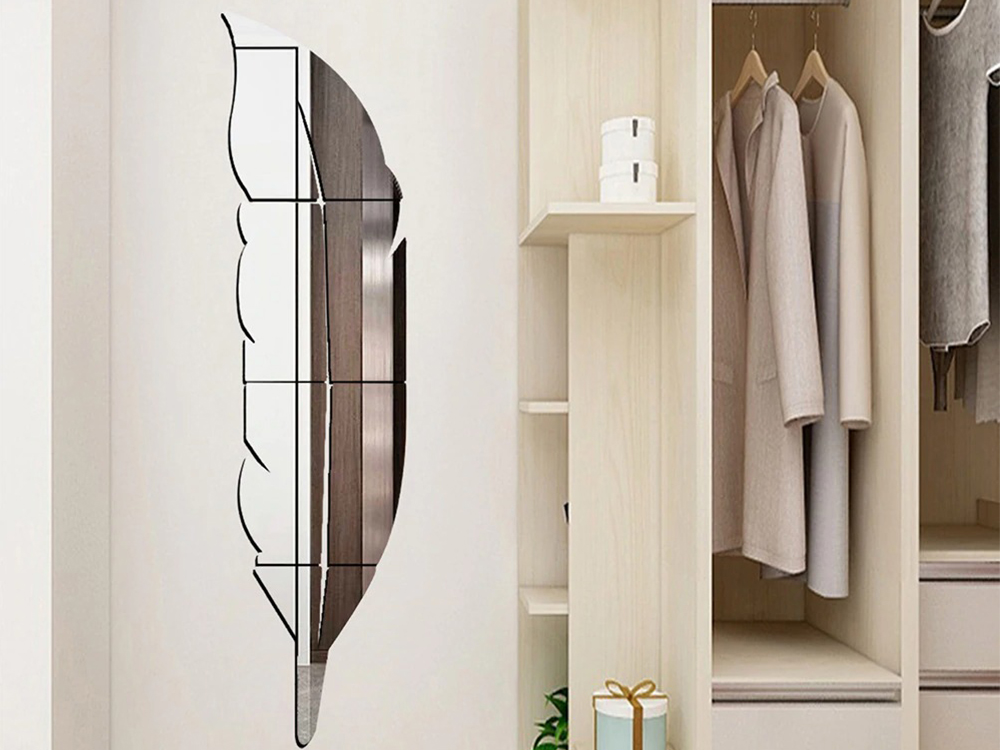 Завдяки тому, що наклейка-дзеркало має великі розміри Ви зможете бачити себе майже в повний зріст і при цьому такі наклейка в формі пера, набагато оригінальніше звичайного дзеркала.