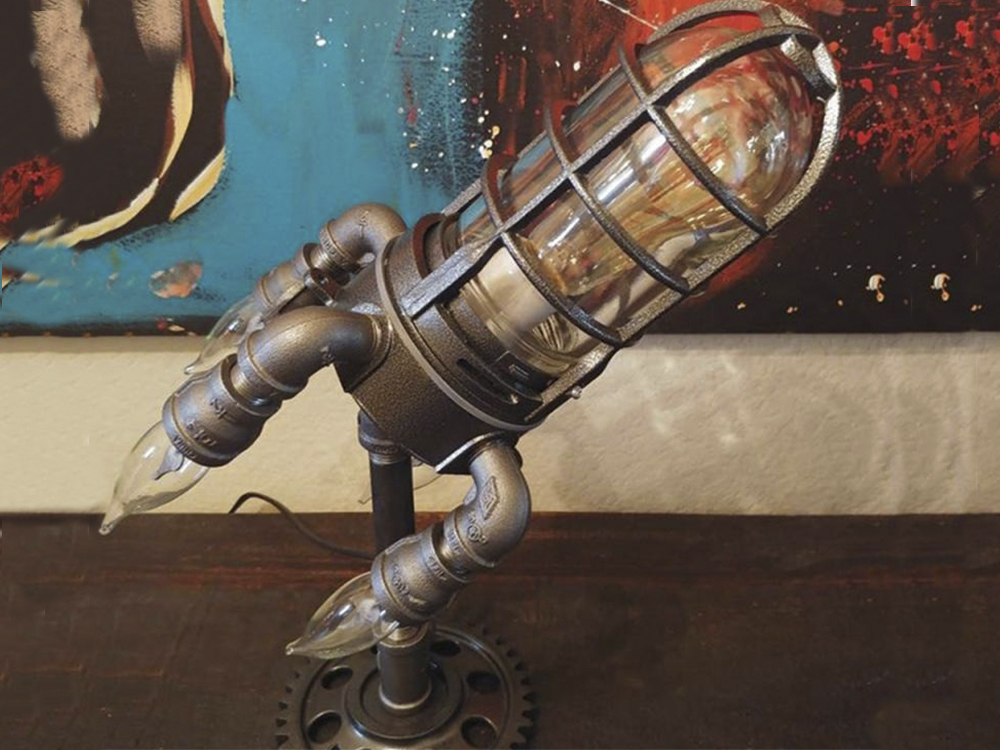Показати оптові ціниЛампа світильник настільна ракета ретро металева - дуже красива лампа нічник в ретро стилі. Така лампа прикрасить будь-який інтер'єр квартири або офісу. Світильник виконаний в індустріальному стилі-симпатик. Цоколь E26.