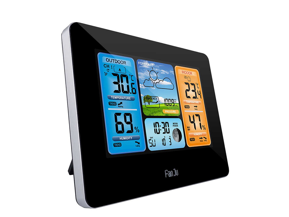 Показати оптові ціниМетеостанція FanJu FJ3373 з гігрометром термометром і барометром цифрова - це відмінна метеостанція з великим кольоровим дисплеєм 5,7 дюймів.