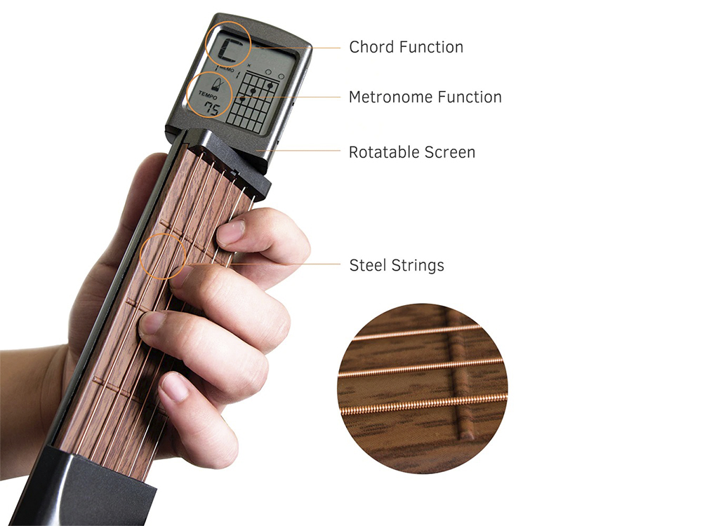 Тренажер оснащений метроном всередині і новачки можуть вивчати акорди з індивідуальним темпом.