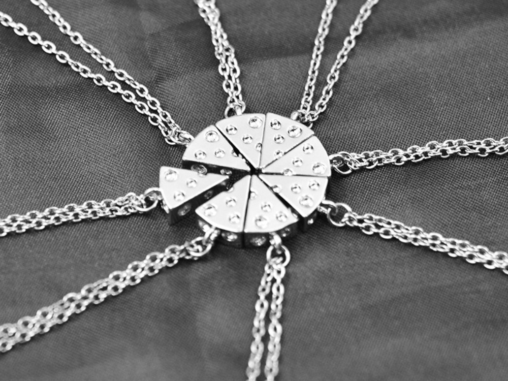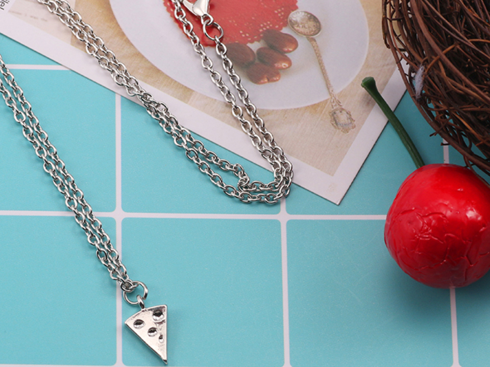 Виконано у вигляді шматочка від великої, красивої піцци. Це намисто для справжніх, нерозлучних друзів.