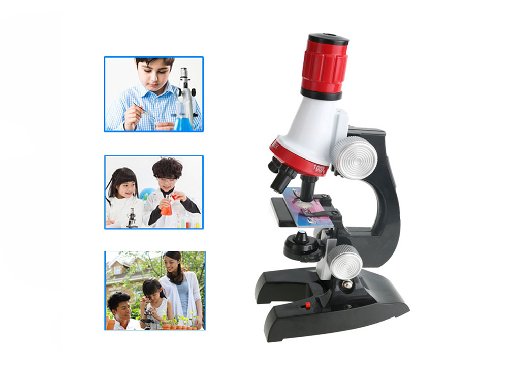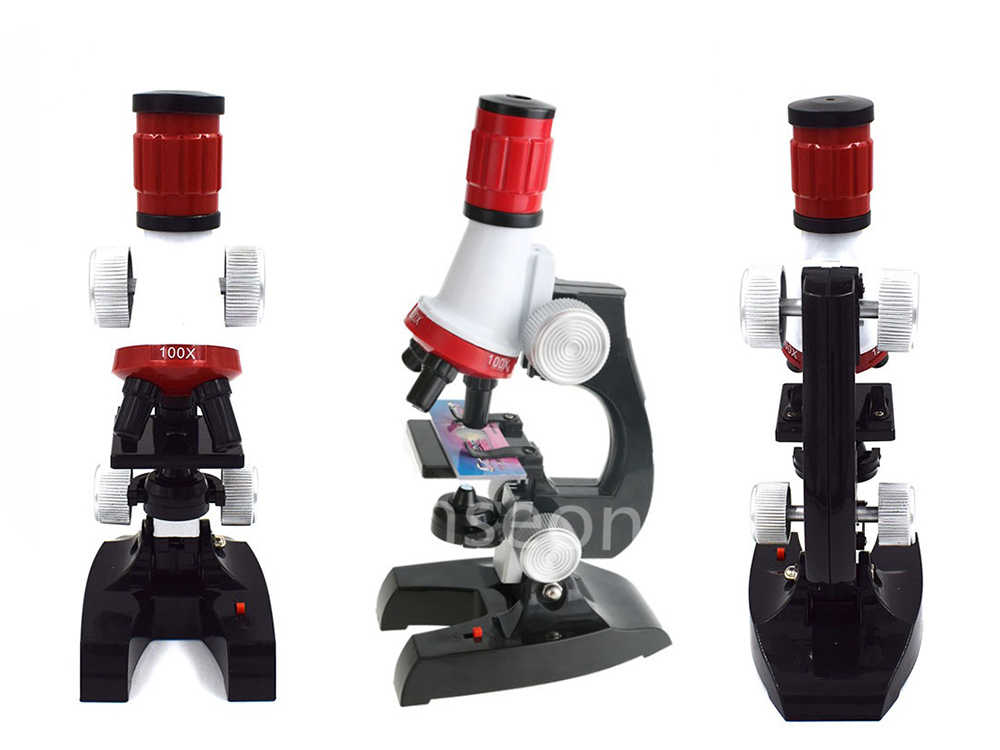 Мікроскоп має підсвічування і збільшення в 100 Х, 400 Х, 1200 Х.