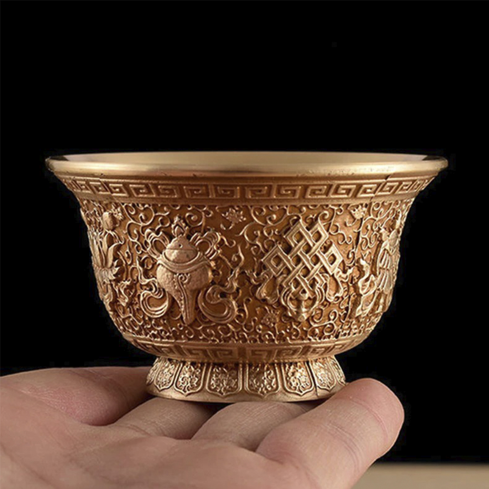 Тибетська чаша для подачі води з латуні Чаша Будди Чашка для медитації , що співає - дуже красива з об'ємним символічним малюнком.