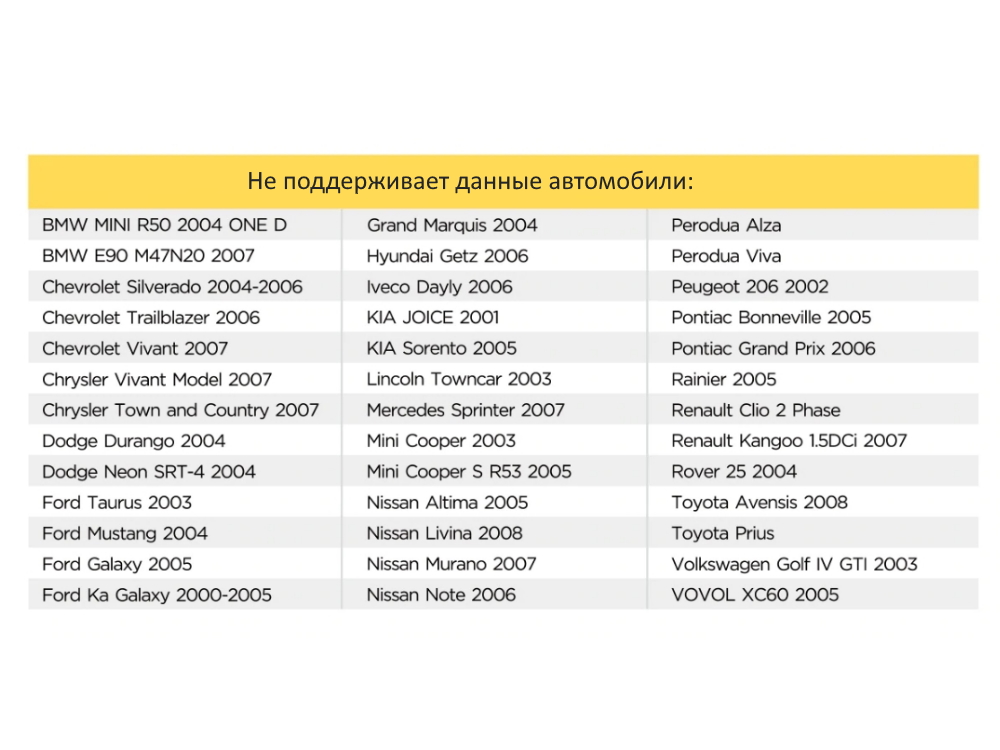 Комп'ютер сумісний з більшістю транспортних засобів – підтримує дев'ять основних протоколів OBD. Підходить для вітчизняних автомобілів з 2012 р.в., азіатських з 2008 р.в., американських та європейських з 2005 р.в. та деяких мінівенів.