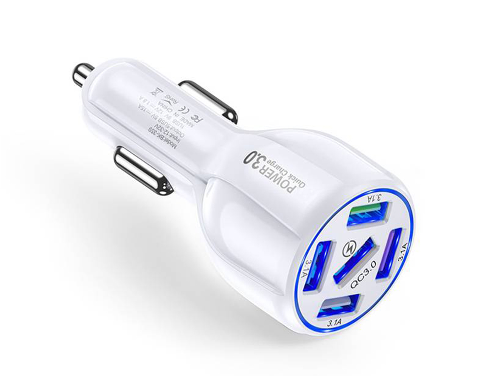 Автомобільний USB-зарядний пристрій із 5 портами bk-359 QC 3.0 15А білий