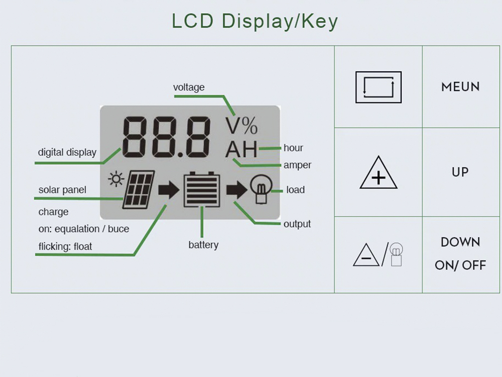 Даний контролер працює з літій-іонними акумуляторами, свинцево-кислотними акумуляторами, що обслуговуються і необслуговуються, гелевими акумуляторами.