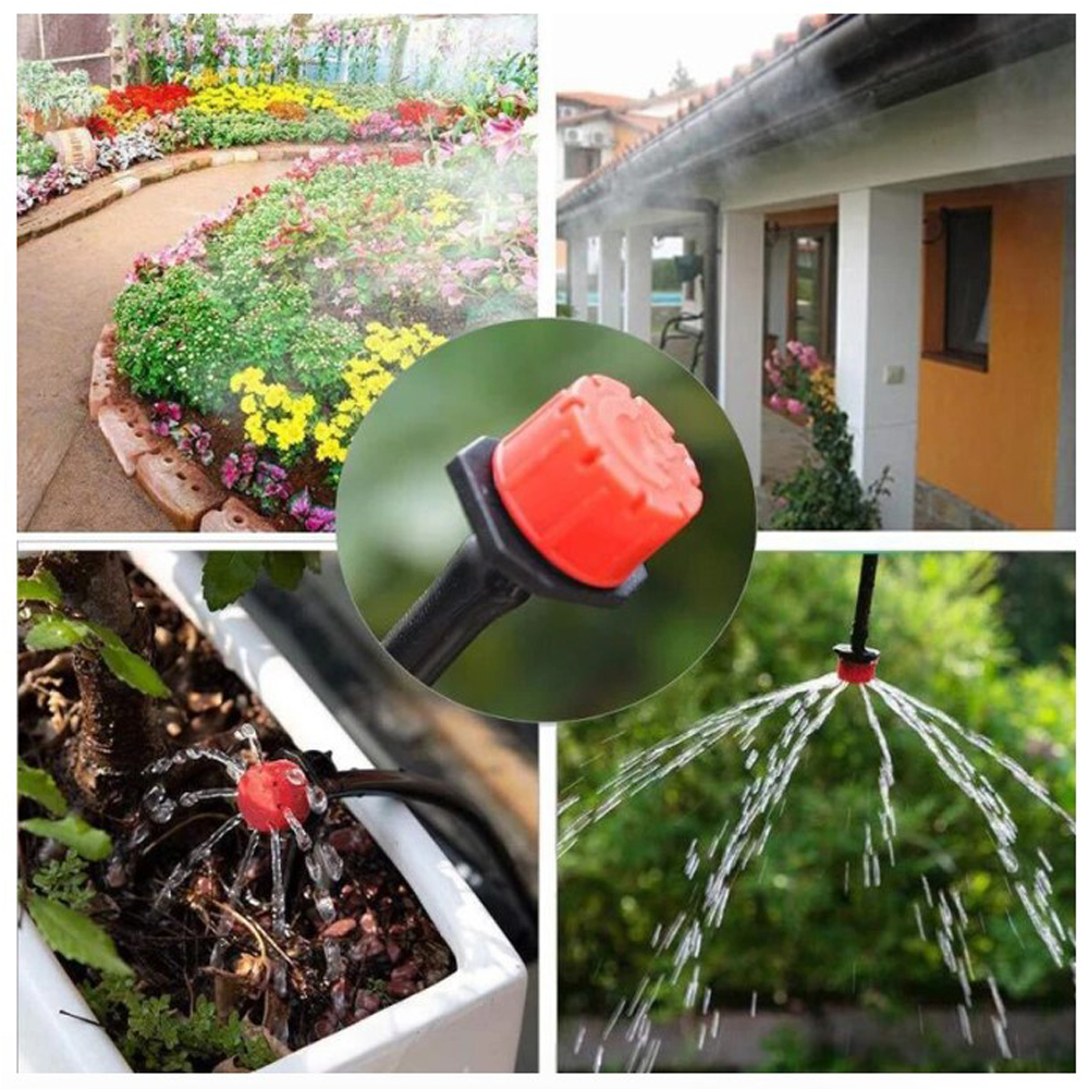 Універсальна система для зрошувального поливу в саду чи в місті. Даний набір дуже простий у використанні і не вимагає спеціальних монтажних інструментів, крім гострих ножиць чи ножа. Все, що вам потрібно, це обрізати мікротрубку і одягнути фітинги на тій відстані, яку вам потрібно. Монтувати рекомендуємо безпосередньо під рослиною (кущ, квіти, дерева тощо). Край мікротрубки повинен бути рівно відрізаний, щоб уникнути протікань у місцях з'єднання. Кожен крапельник може бути відрегульований окремо, а швидкість крапель може бути відрегульована відповідно до різних потреб у воді кожної рослини. У найменшому випадку крапельницю можна повністю закрити. Це обладнання ідеально підходить для патіо, атріумів та тепличних рослин. Він може бути відрегульований для поливу підвісних кошиків та садових грядок.