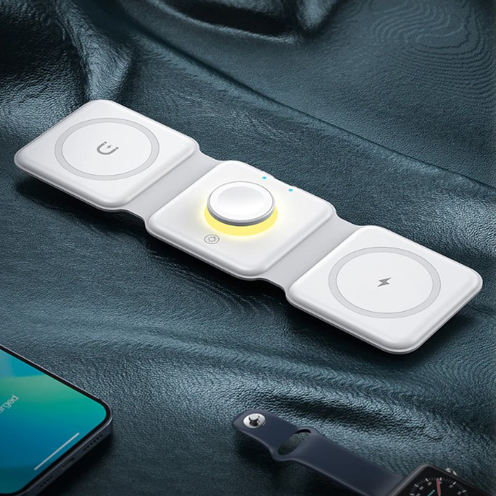 Бездротова зарядна станція складна, це дозволяє легко брати її собою, класти в кишеню. Бездротовий зарядний пристрій можна скласти на 180°, швидко перетворити на підставку для телефону, зарядна пластина покрита магнітною присоскою, може бути міцно примагнічена на телефони та чохли, навіть якщо струшувати зарядку, телефон не сковзне. Дозволяє використовувати зарядний пристрій як підставку та заряджати коли телефон у горизонтальному положенні для перегляду фільмів, у вертикальному для чату, зручно використовувати як підставку за обіднім столом, заряджаючи під час використання.