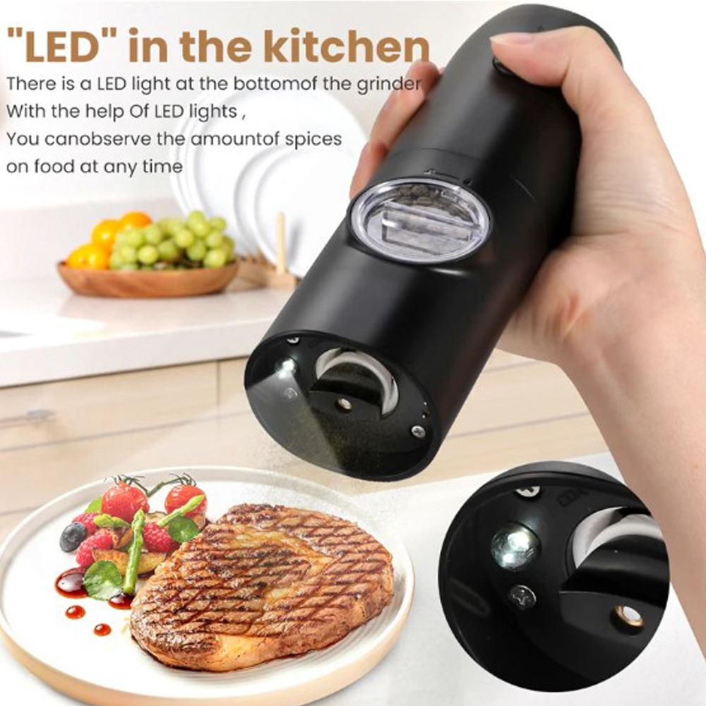 Показати оптові ціниЕлектричний млин для перцю та солі - на відміну від інших млинів для перцю з ручним керуванням або батареєю AAA, цей електронний млин для перцю має вбудовану літієву батарею, що перезаряджається, що дозволяє заряджати її в будь-якому місці без заміни батареї. Надлишковий час роботи в режимі очікування, одна зарядка може підтримувати роботу млина для перцю 200-300 разів.