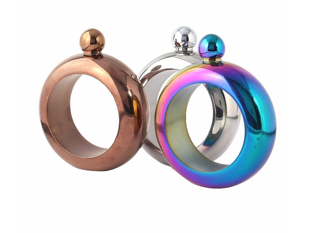 Виготовлена ​​фляга браслет з нержавіючої сталі. Зовнішній розмір фляги 11,9 см х 10 см, а внутрішній діаметр 6,9 см.