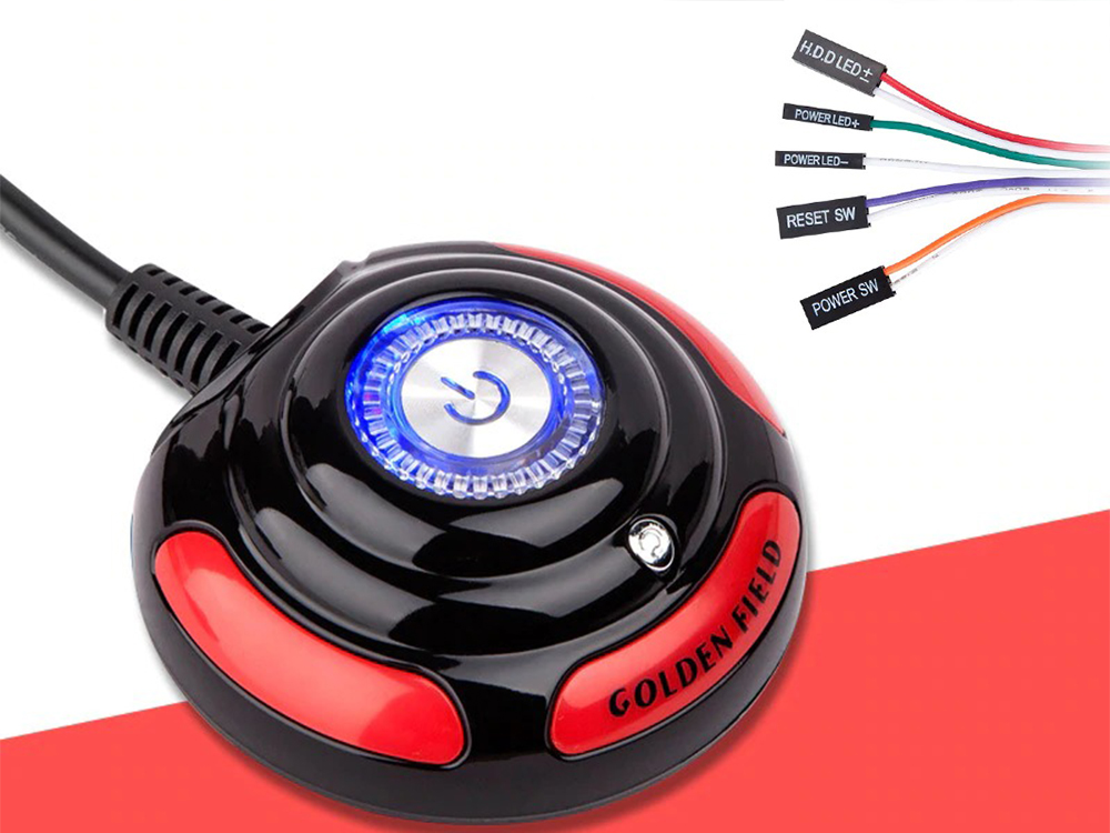 Показати оптові ціниВиносна кнопка включення для ПК Golden Fiеld з кабелем 1,6 м - завдяки цій виносної кнопки Ви зможете заховати системний блок.