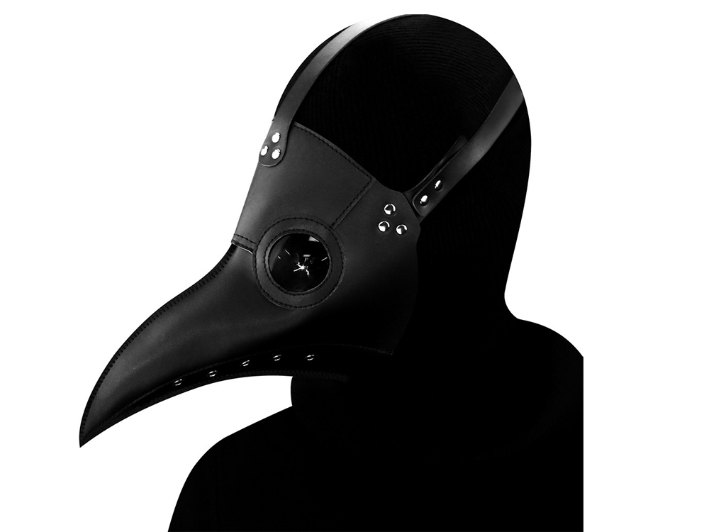 Маска виконана у вигляді популярної маски під час карнавалів в Венеції. Також такі маски носили лікарі під час чуми. Вважалося що в такій масці ризик заразитися чумою менше.