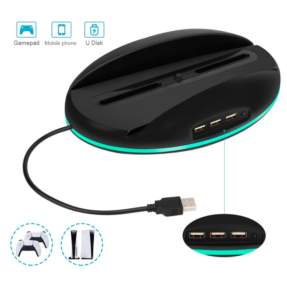 Показати оптові ціниСвітлодіодна підставка для PS5 з USB портами - зручний аксесуар для вашої ігрової приставки PS5, що поєднує цікавий сучасний дизайн, і зручності в підключенні додаткових девайсів до USB роз'ємів присутніх в ній.