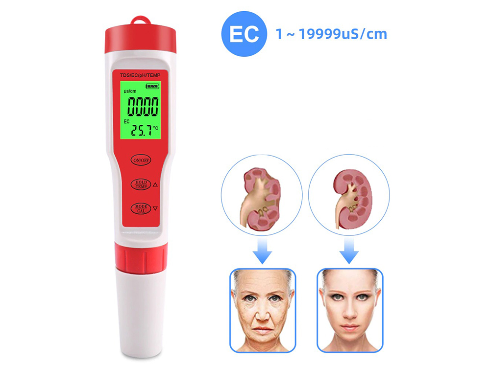 Також присутній вимірювання температури. Дозвіл 0,01 pH; 1ppm; 1muS / cm; 0,1 ℃; 0,1 degF.