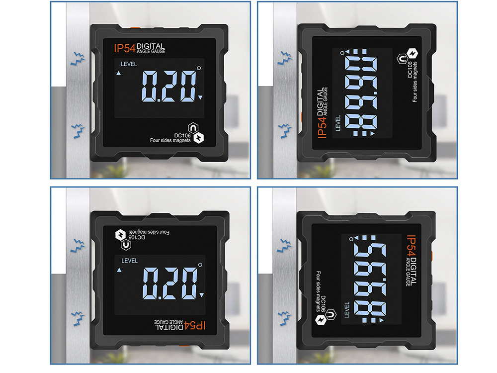Завдяки вбудованим 4-м магнітів, Ви зможете прикріпити цей углометр на будь-яку металеву поверхню (горизонтальну, під кутом або вертикальну).