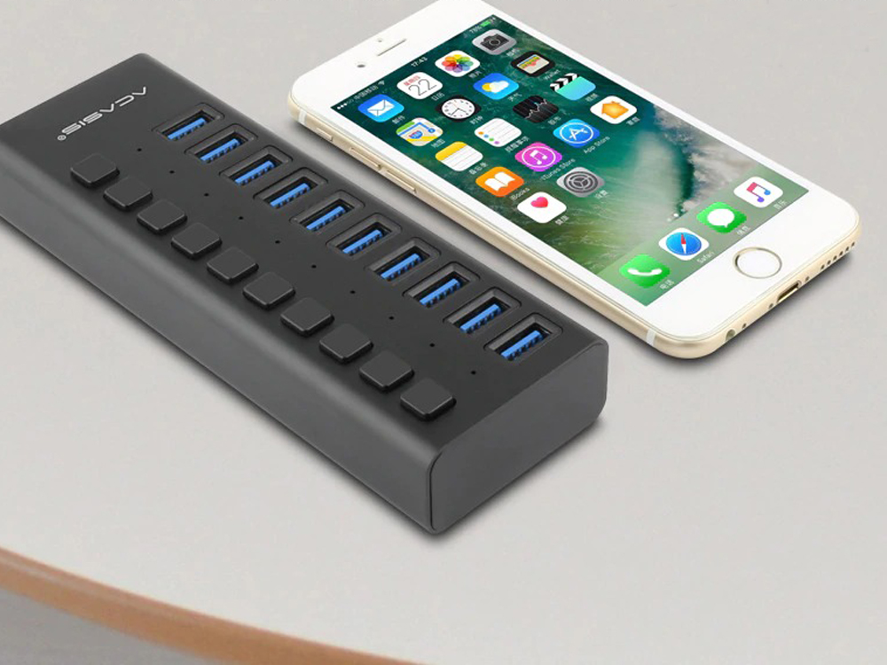 Показати оптові ціниUSB хаб Acasis P10 на 10 портів USB 3.0 з додатковим живленням - це сучасний, вироблений з усіма сучасними технологічними новинками хаб USB версії 3.0, що забезпечує швидкість передачі даних до 5 Гбіт / с.