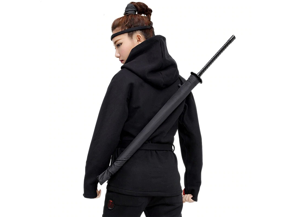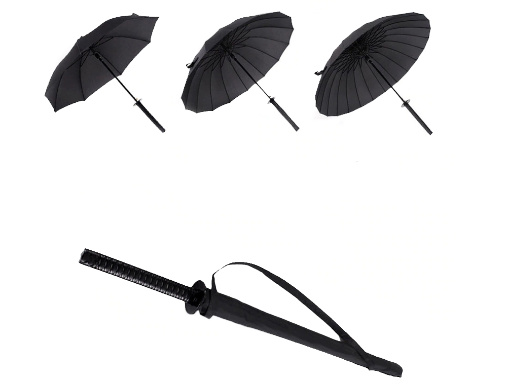 Парасолька дуже оригінальний і виконаний у вигляді самурайського меча. Його точно неможливо переплутати з іншими парасолями.